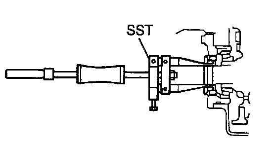 Using Special Service Tool or equivalent, pull out the oil seal.