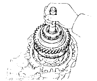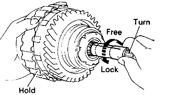b. Hold the overdrive direct clutch and turn the intermediate shaft. The shaft should turn freely clockwise and should lock counterclockwise.