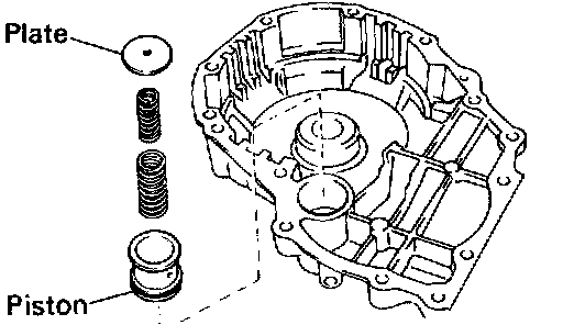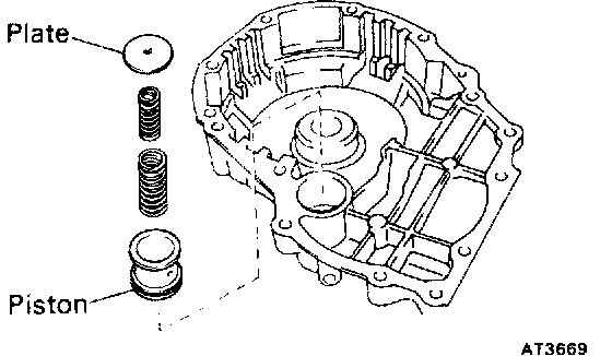 c. Install the accumulator piston, 2 springs and retaining plate.