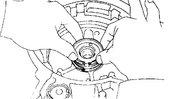 Install the 2 oil seal rings to the overdrive case groove, then snug them down by squeezing their ends together.