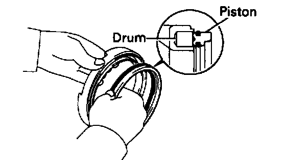 b. Press the piston into the drum, being careful not to damage the O-rings.