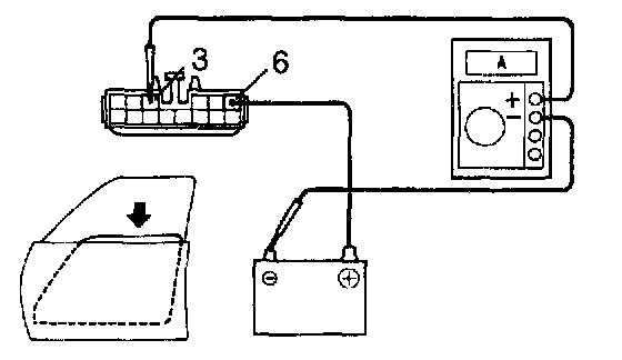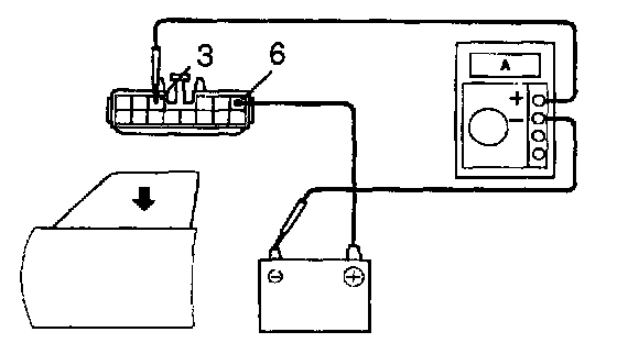 b. Connect the positive (+) lead from the ammeter to terminal 3 on the wire harness side connector and the negative (-) lead to the negative terminal of the battery.