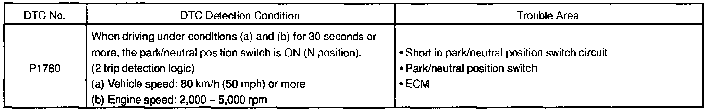 DTC P1780 Park/Neutral Position Switch MalfunctionCIRCUIT DESCRIPTION