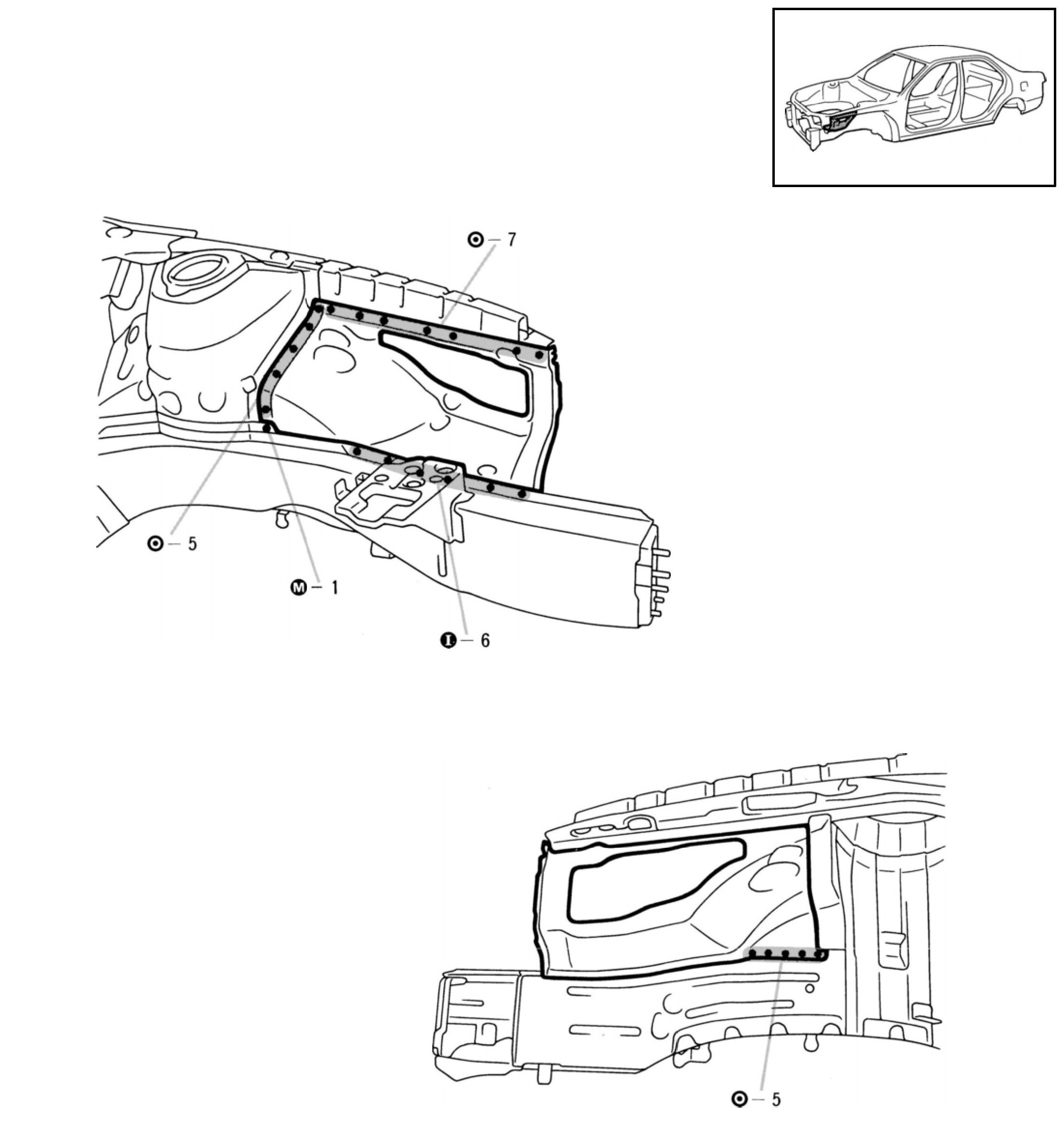 Temporarily install the new parts and measure each part in accordance with the body dimension diagram.