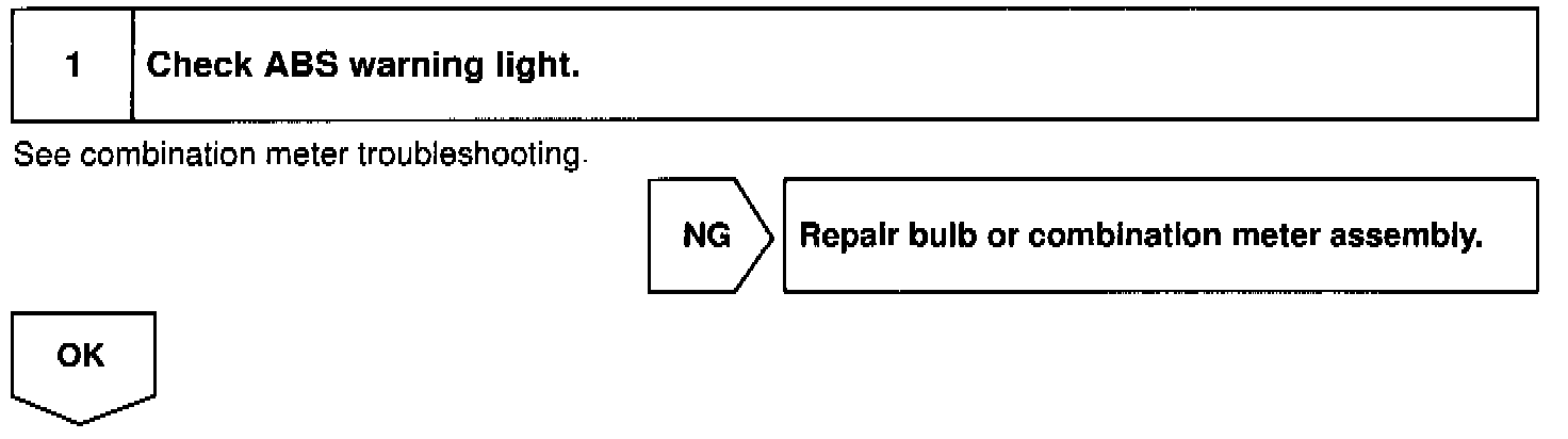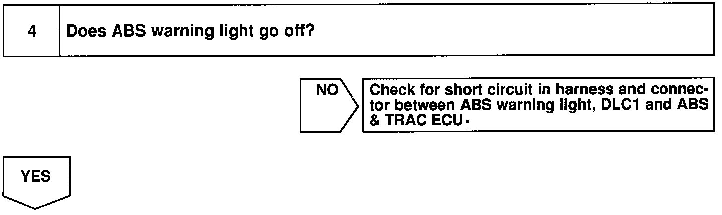 If the ECU detects trouble, it lights the ABS warning light while at the same time prohibiting ABS control. At this time, the ECU records a DTC in memory.