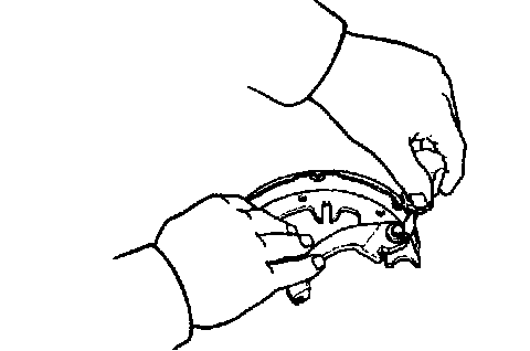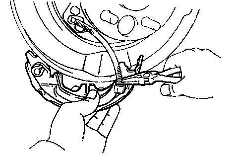 d. Using needle-nose pliers, disconnect the parking brake cable from the parking brake shoe lever.