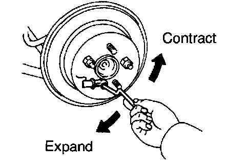 c. Turn the adjuster and expand the shoes until the disc locks.