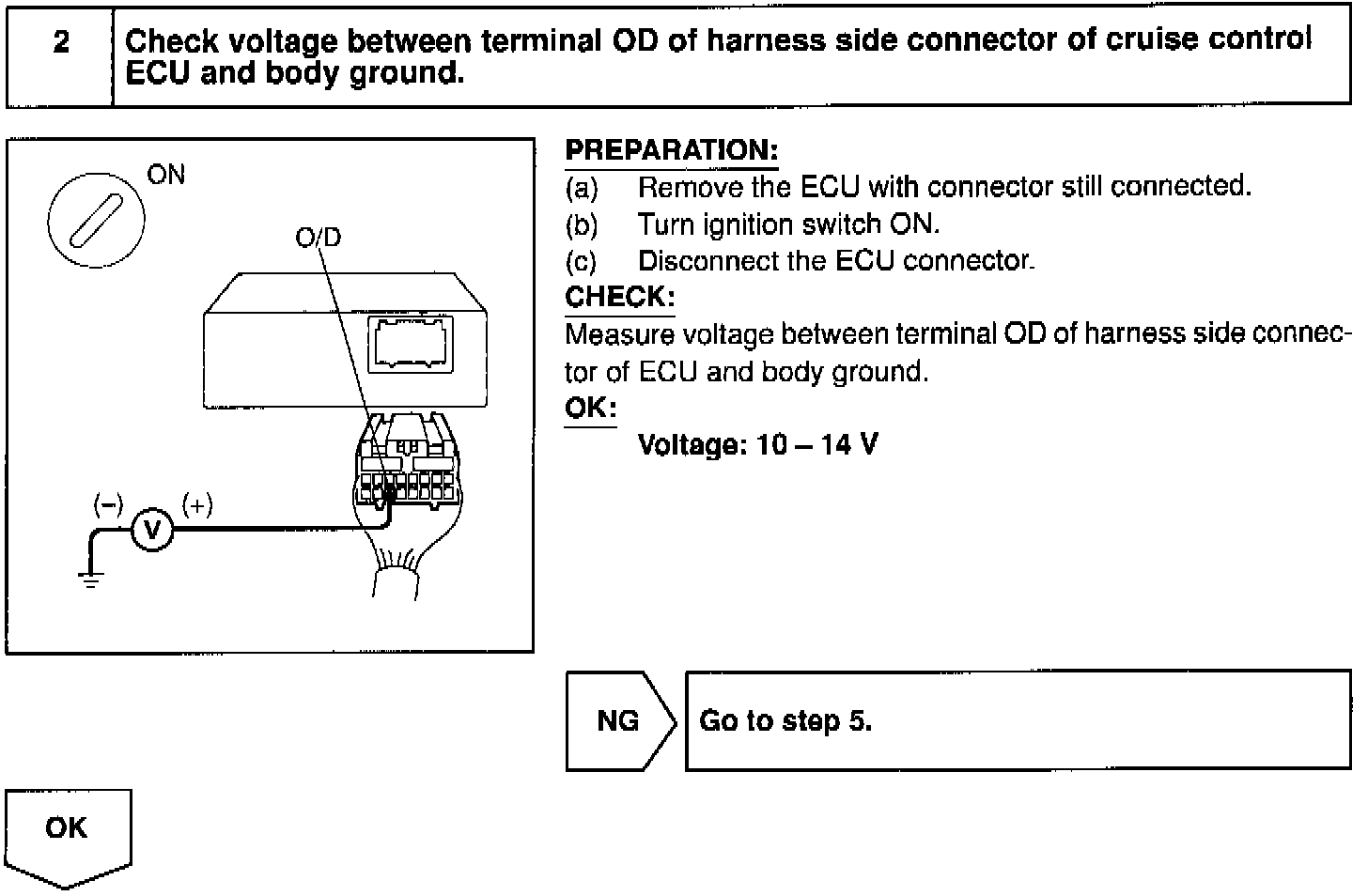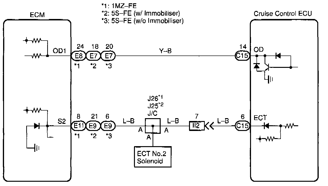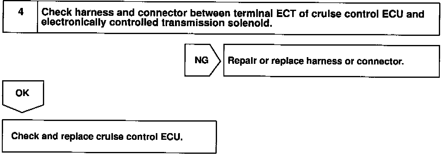 Terminal ECT of the cruise control ECU detects the shift change signal (output to electronically controlled transmission No. 2 solenoid) from the ECM.