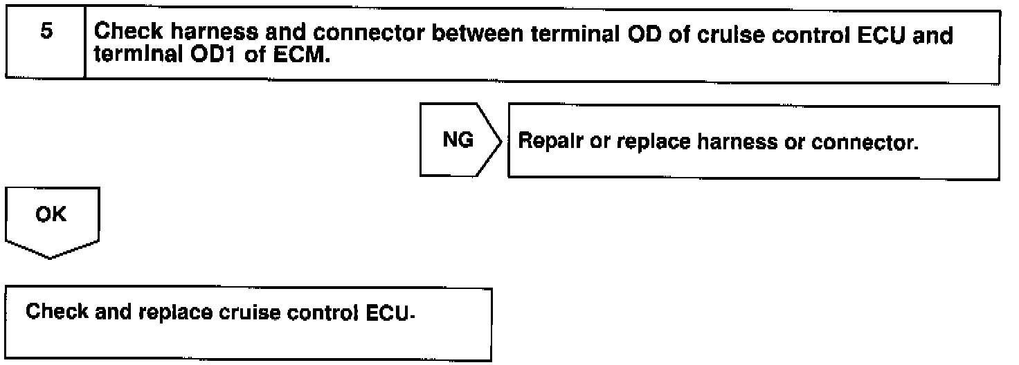 If the vehicle speeds down, also when terminal ECT of the cruise control ECU receives down shifting signal, it sends a signal from terminal OD to ECM to cut overdrive until the end of the uphill slope, and the gear shifts are reduced and gear shift points in the electronically controlled transmission am changed.