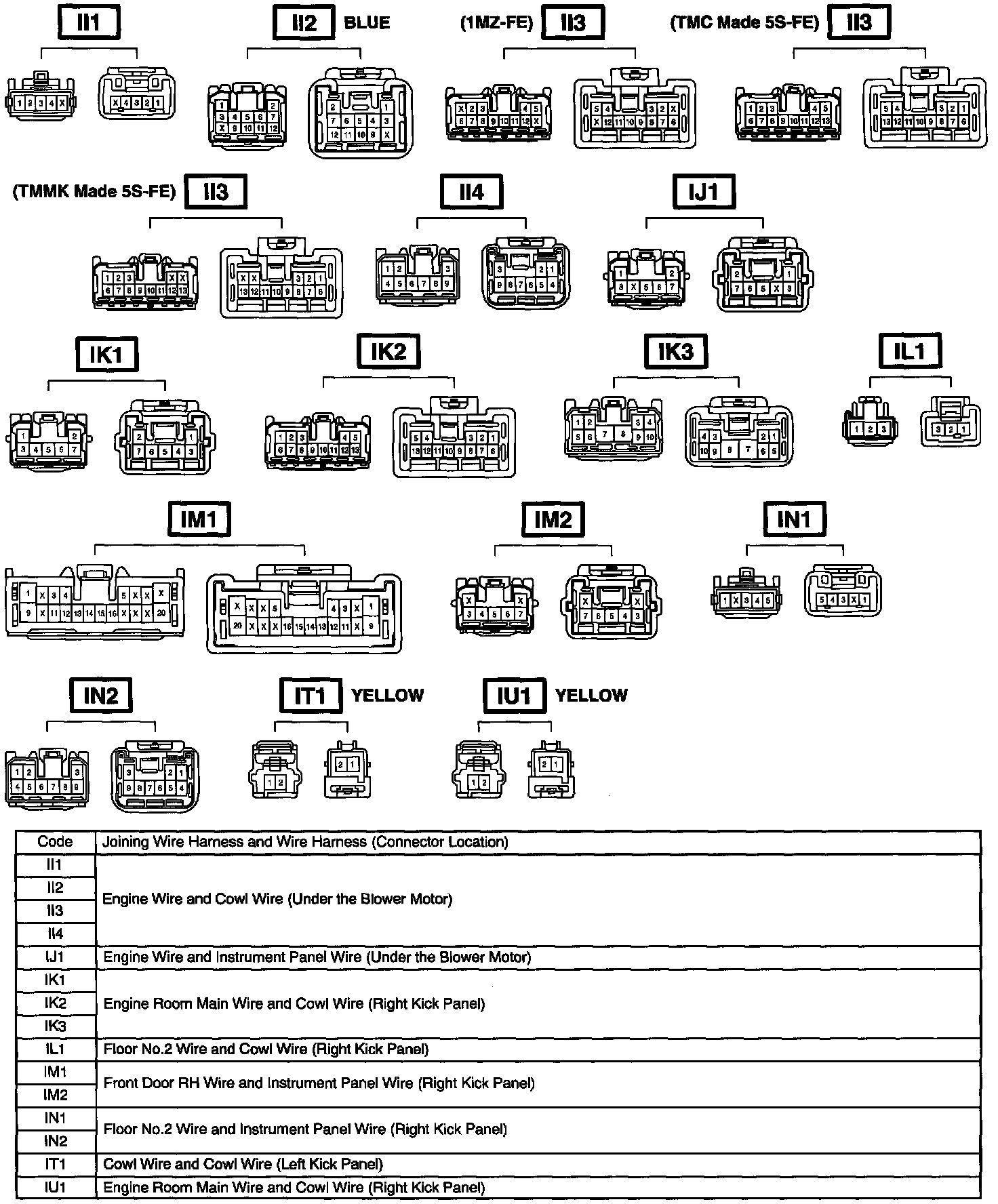 Connectors II1-II4, IJ1, IK1-IK3, IL1, IM1, IM2, IN1, IN2, IT1, IU1: