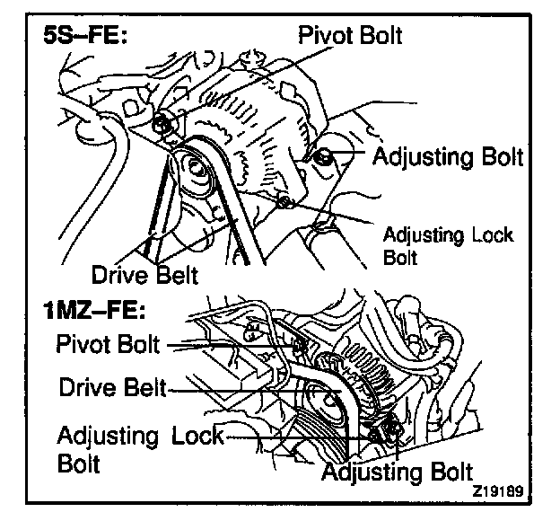 b. Loosen the drive belt tension by adjusting bolt and remove the drive belt