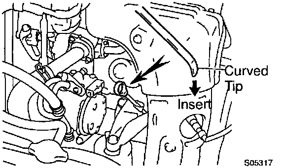 ^ When inserting the oil dipstick, insert the curved tip of the dipstick facing the same direction as the curve of the guide.