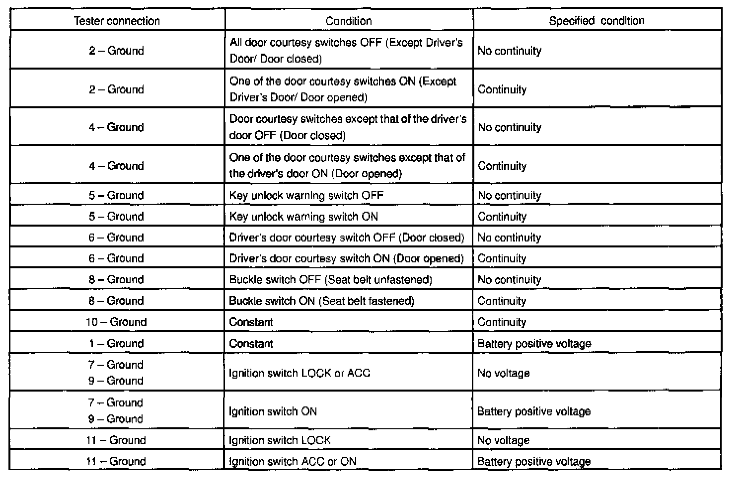 If the circuit is not as specified, inspect the circuits connected with to other parts.