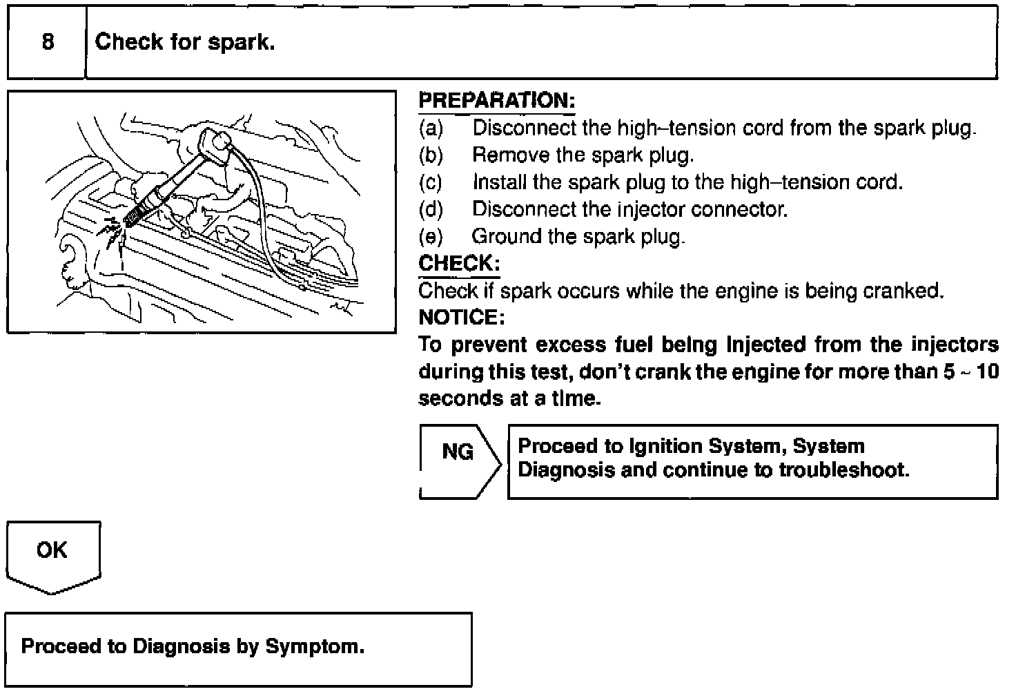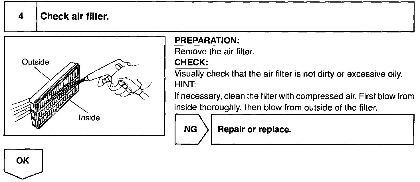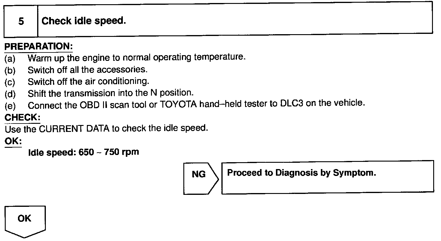 BASIC INSPECTIONWhen the malfunction code is not confirmed in the DTC check, troubleshooting should be performed in the order for all possible circuits to be considered as the causes of the problems. In many cases, by carrying out the basic engine check shown in the following flow chart, the location causing the problem can be found quickly and efficiently. Therefore, use of this check is essential in engine troubleshooting.