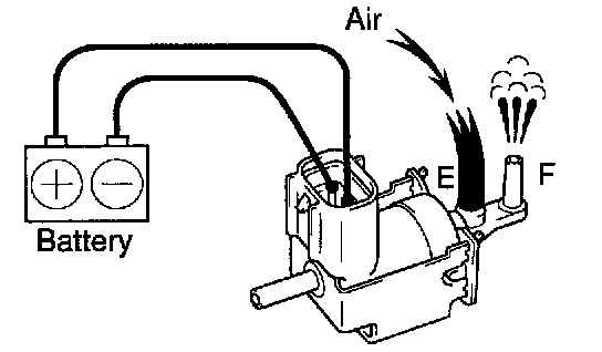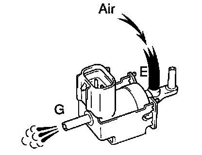 3. Check that air flows from ports E to F. If operation is not as specified, replace the VSV.