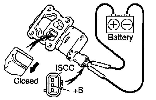 INSPECT IAC VALVE OPERATIONa. Connect the positive (+) lead from the battery to terminal +B and negative (-) lead to terminal ISCC, and check that the valve is closed.