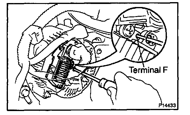 - With terminal F grounded, start the engine and check the voltmeter reading of terminal B.