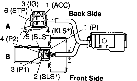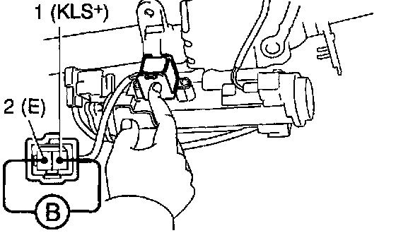 c. Apply battery positive voltage between terminals. Check that operation noise can be heard from the solenoid.