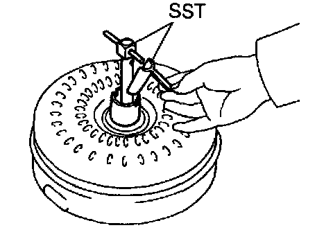 b. Install SST so that it fits in the notch of the converter hub and outer race of the one-way clutch.