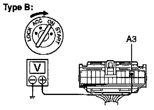 a. Connect the positive (+) lead from the voltmeter to terminal A3 and the negative (-) lead to body ground.