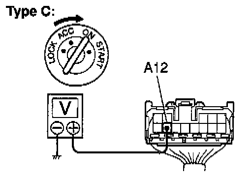 a. Connect the positive (+) lead from the voltmeter to terminal A12 and the negative (-) lead to body ground.