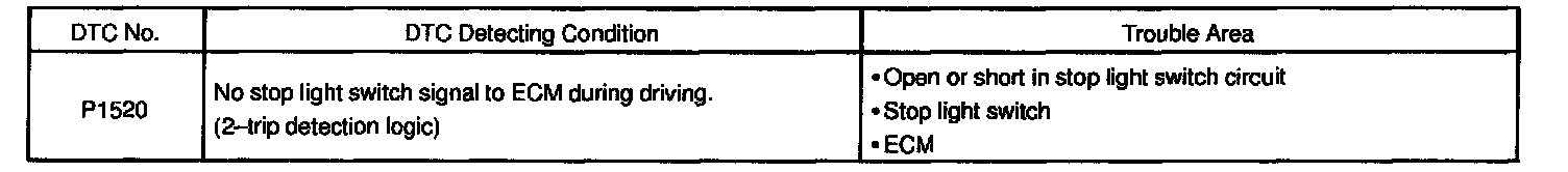 DTC P1520 Stop Light Switch Signal Malfunction