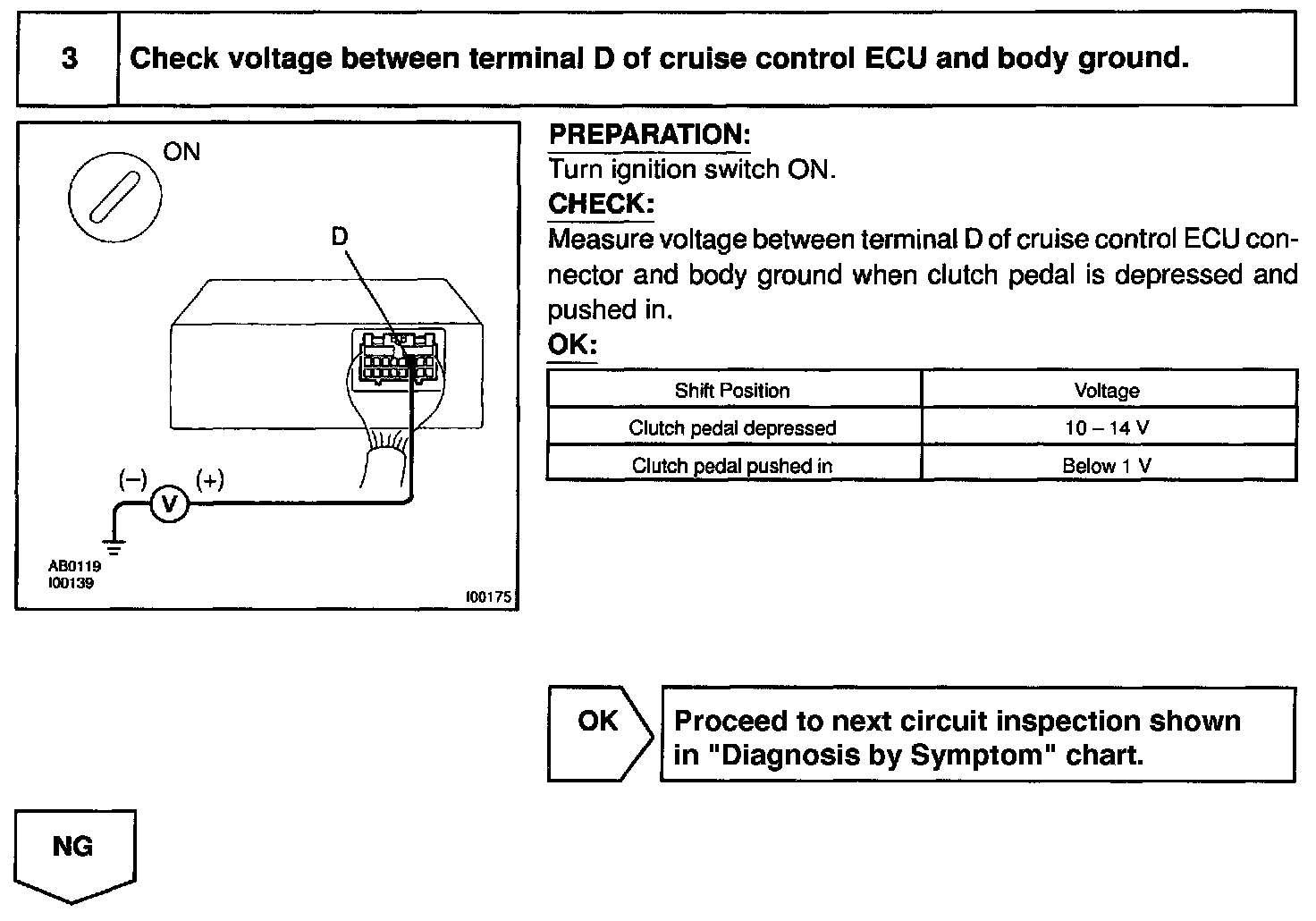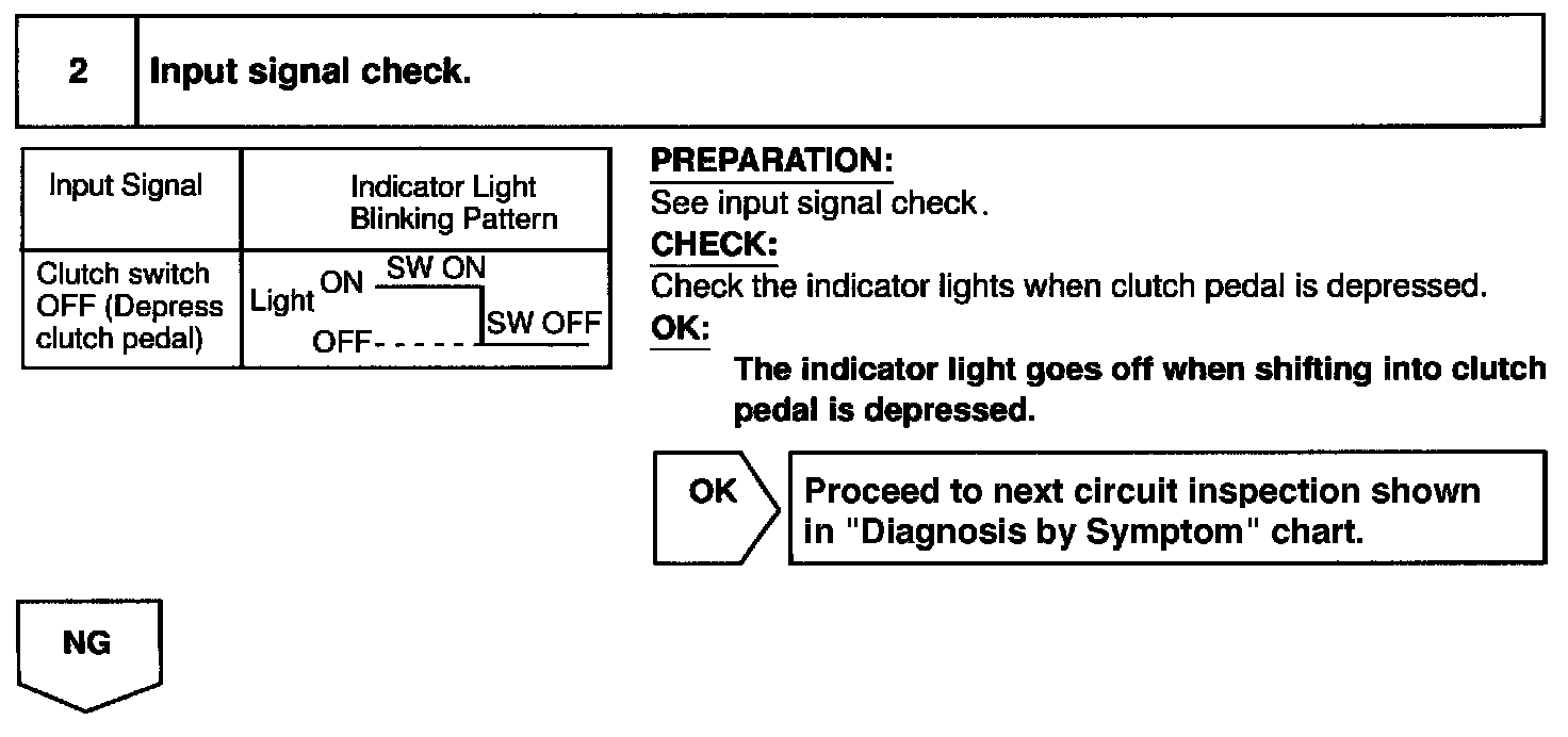 CIRCUIT DESCRIPTIONWhen the clutch pedal is depressed, the clutch switch sends a signal to the cruise control ECU. When the signal is input to the cruise control ECU during cruise control driving, the cruise control ECU cancels cruise control.