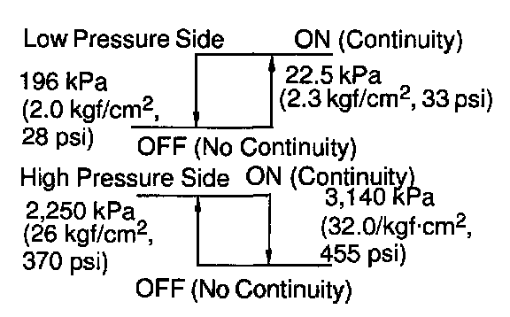 b. Inspect pressure switch continuity (Magnetic Clutch Control).