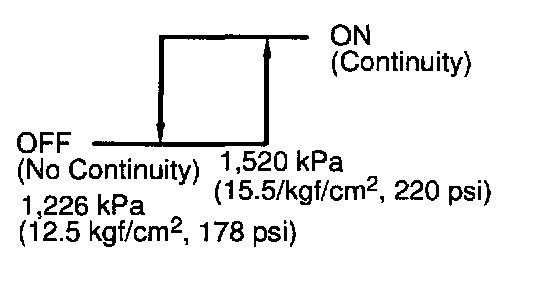 2. Check continuity between terminals when refrigerant pressure is changed, as shown in the illustration.