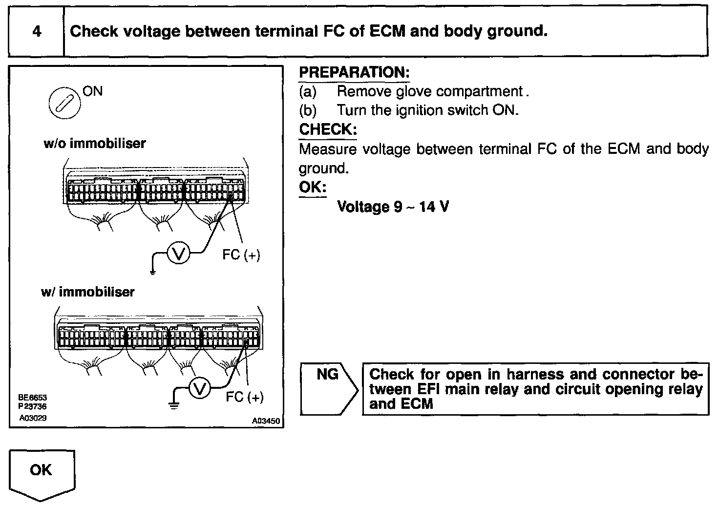 In the diagram, when the engine is cranked, current flows from terminal ST of the ignition switch to the starter relay coil and also current flows to terminal STA of ECM (STA signal).