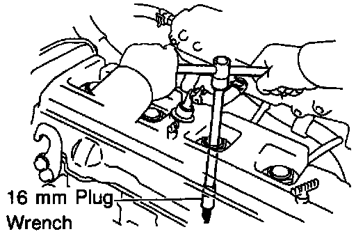 c. Using a 16 mm plug wrench, remove the 4 spark plugs.