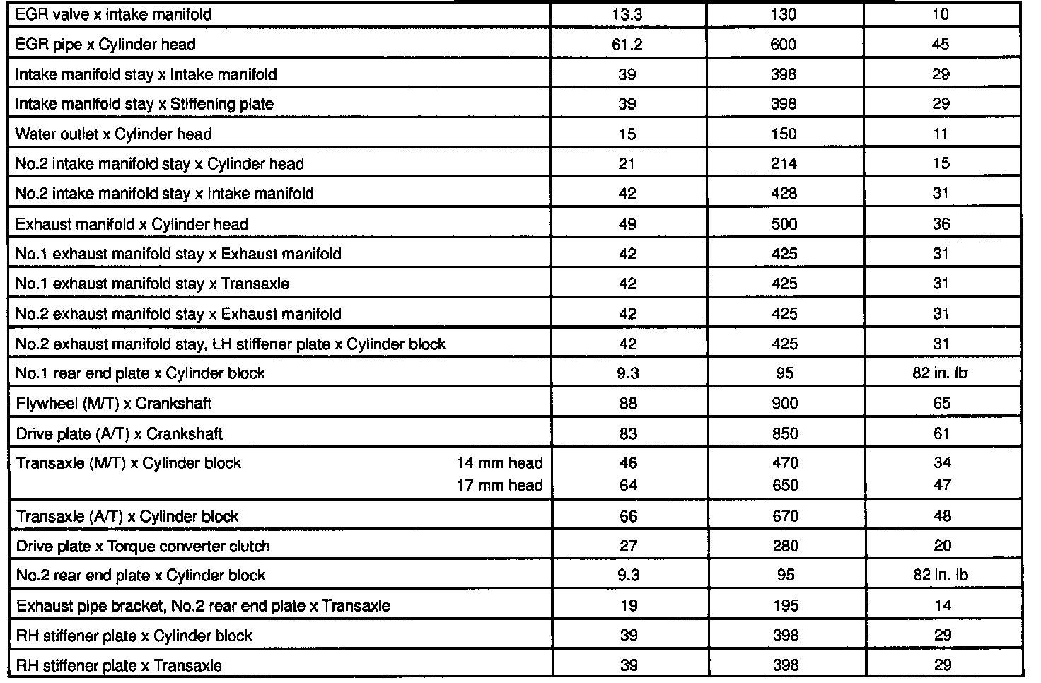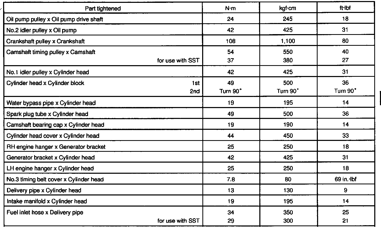5S-FE Engine Mechanical Torque:
