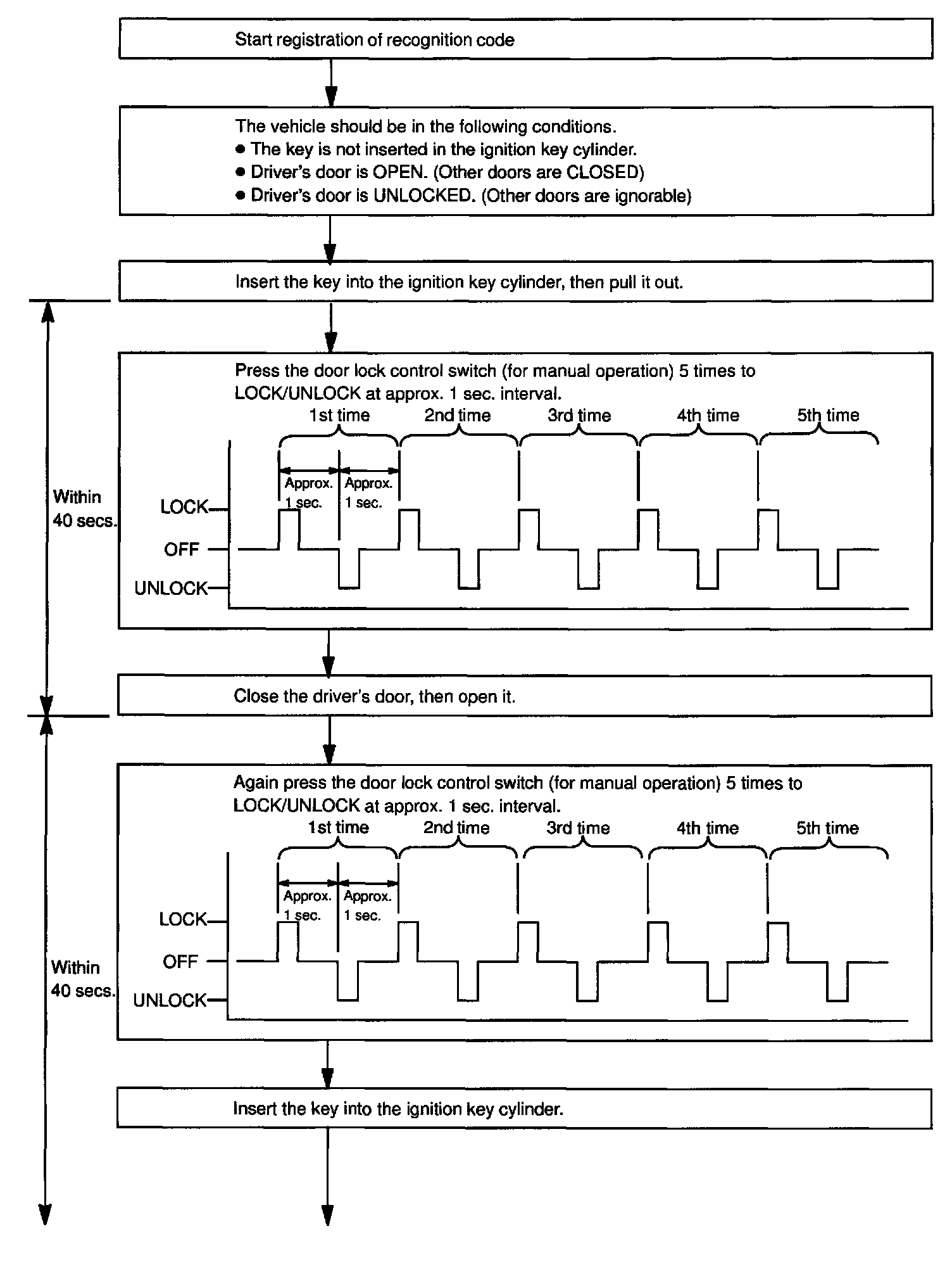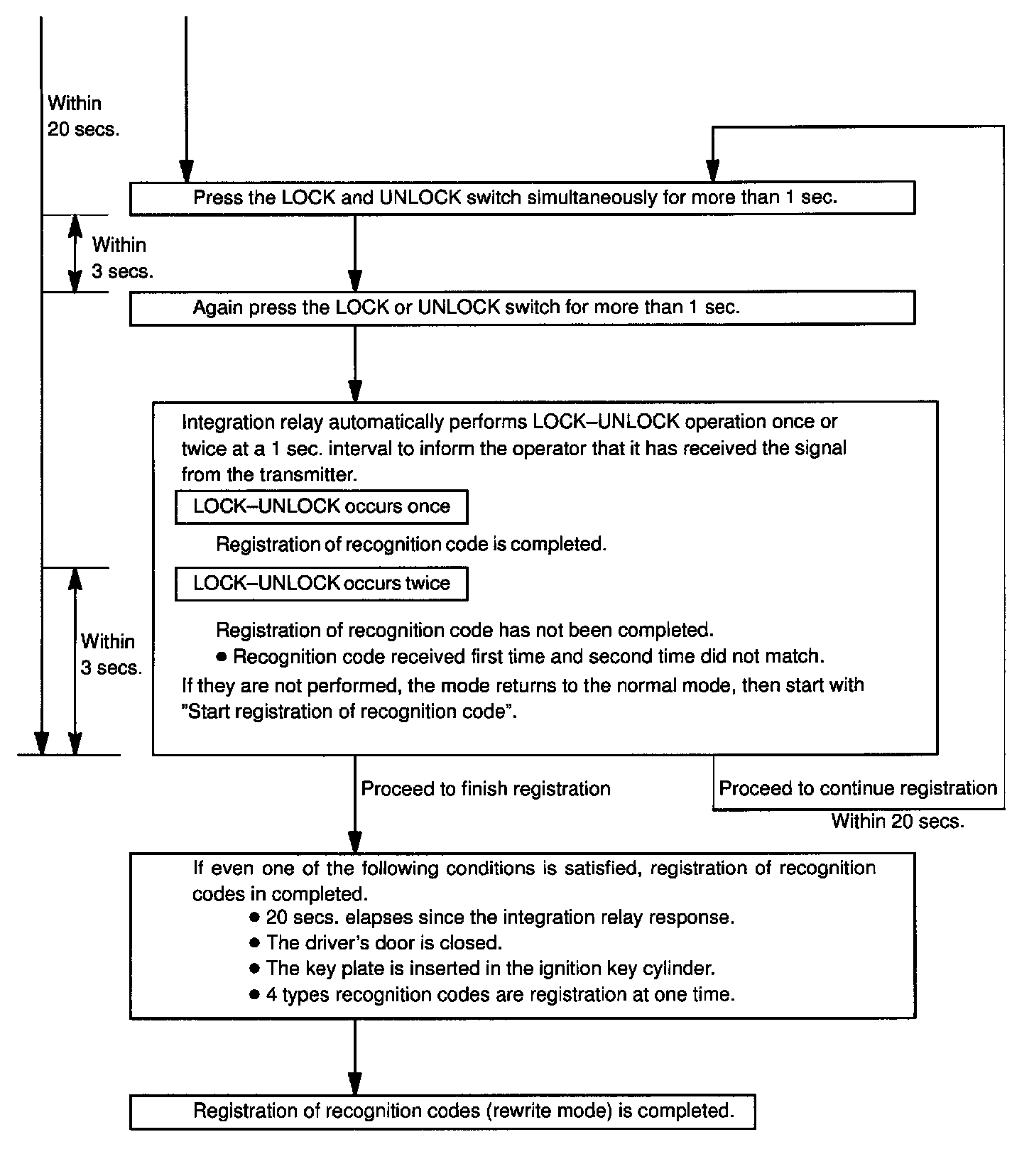 b. Follow the charts above to register the transmitter recognition code at the wireless door lock control receiver.