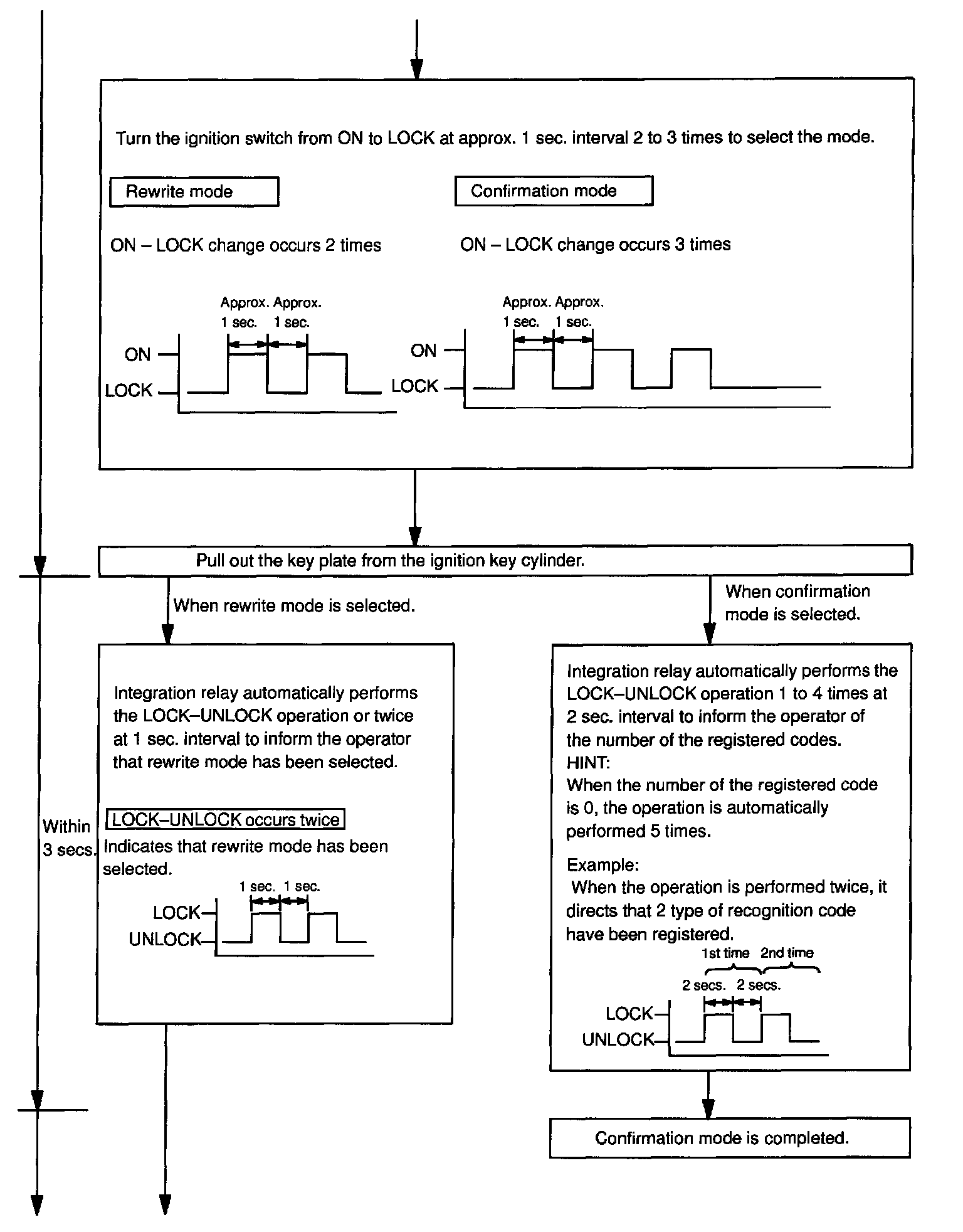 - The confirmation mode is for confirming how many recognition codes are already registered before you rewrite recognition codes.