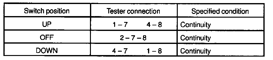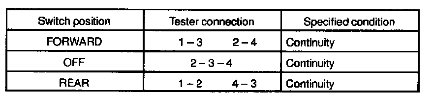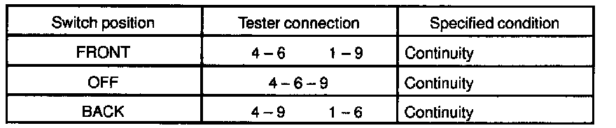 If continuity is not as specified, replace the switch.
