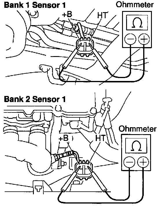 Except California A/T: INSPECT HEATER RESISTANCE OF HEATED OXYGEN SENSORS (Bank 1 Sensor 1, Bank 2 Sensor 1)