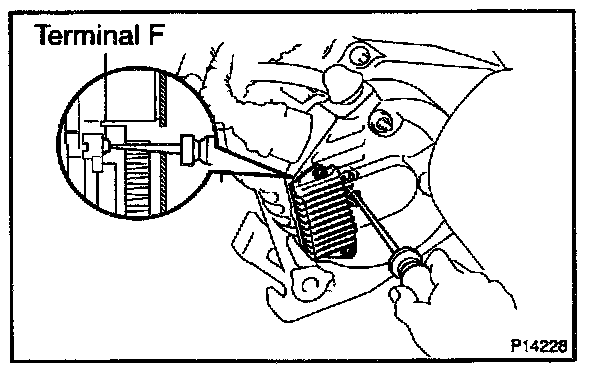- With terminal F grounded, start the engine and check the voltmeter reading of terminal B.