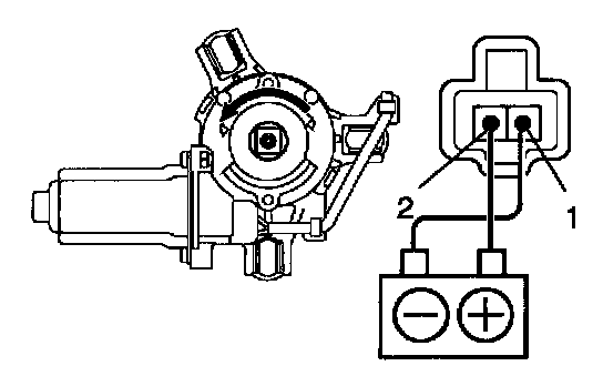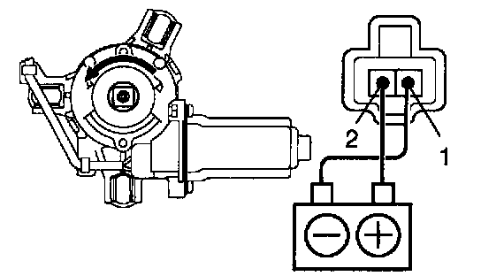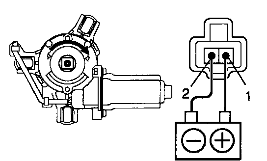a. Connect the positive (+) lead from the battery to terminal 1 and the negative (-) lead to terminal 2, and check that the motor turns clockwise.