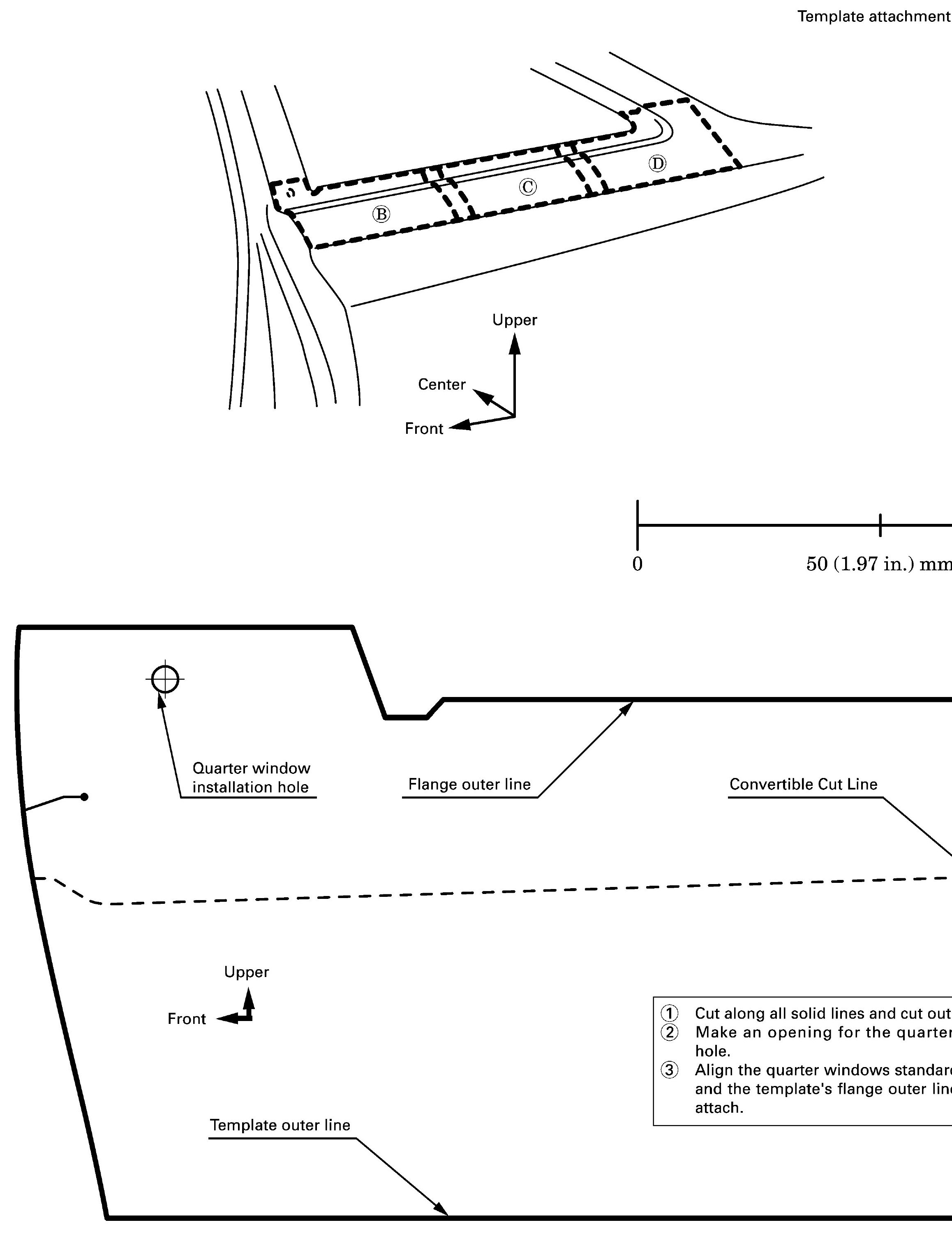 TEMPLATE CUT LOCATIONS FOR THE CONVERTIBLECARE POINTS FOR QUARTER PANEL AREAS