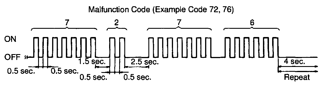 - If every sensor is normal, a normal code is output (A cycle of 0.25 Sec. ON and 0.25 sec. OFF is repeated).