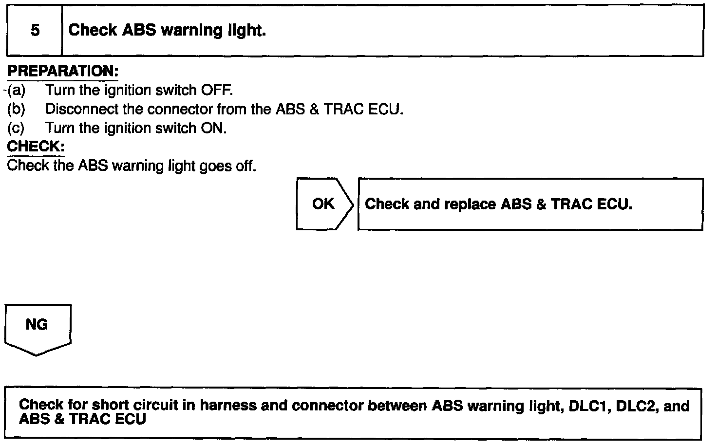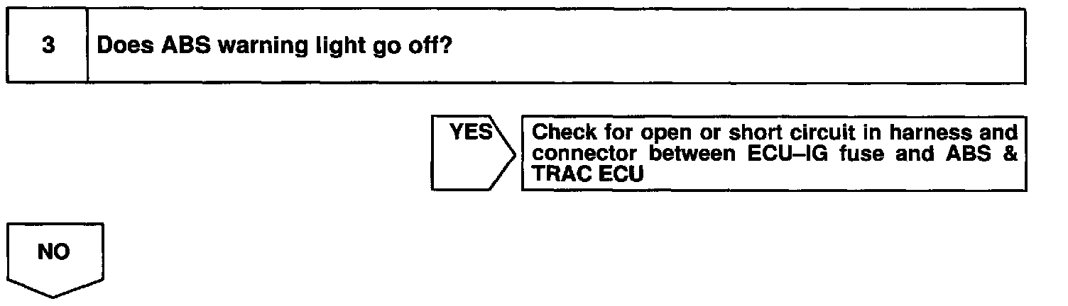 If any trouble occurs in the power source circuit, the ECU cuts off current to the ABS & TRAC solenoid relay and prohibits ABS control and TRAC control.