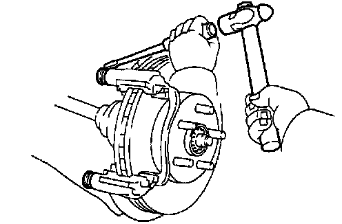 b. Remove the 3 hub nuts and the disc. Reinstall the disc in the position turned 1/5 from its original position on the hub. Install and torque the hub nuts. Remeasure the disc runout. Make a note of the runout and the disc's position on the hub.