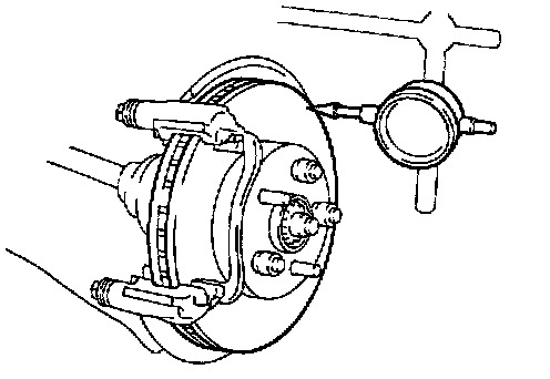 If the disc's runout is the maximum value or greater, check the bearing play in the axial direction and check the axle hub runout. If the bearing play and axle hub runout are not abnormal, adjust the disc runout or grind it on a "On-Car" brake lathe.