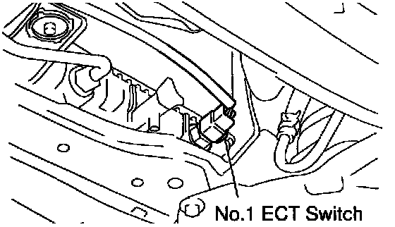 1. Using an ohmmeter, check that there is continuity between terminals when the coolant temperature is above 94°C (201°F).