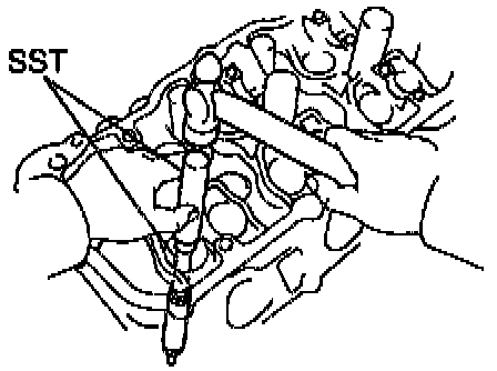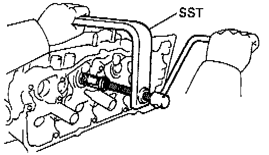 a. Using SST, compress the valve spring and remove the 2 keepers.