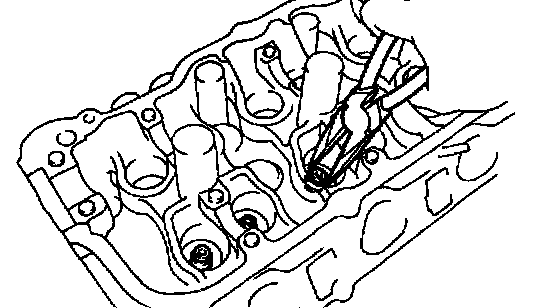 c. Using a caliper gauge, measure the bushing bore diameter of the cylinder head.