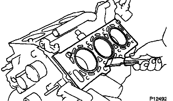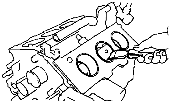 Using a gasket scraper, remove all the gasket material from the cylinder block contact surface.