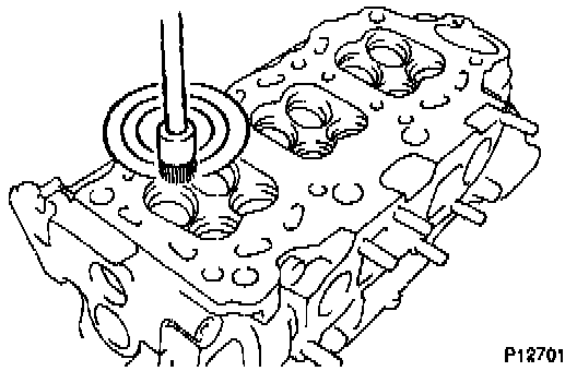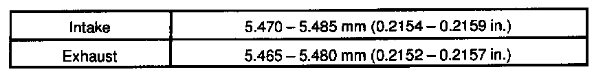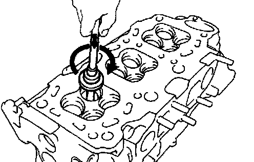 g. Using a sharp 5.5 mm reamer, ream the guide bushing to obtain the standard specified clearance between the guide bushing and valve stem.