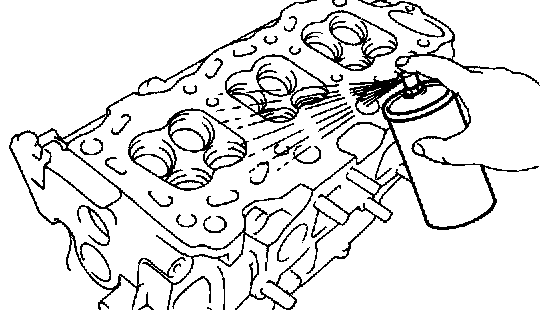 Using a dye penetrant, check the combustion chamber, intake ports, exhaust ports and cylinder block surface for cracks. If cracked, replace the cylinder head.