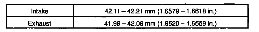 ^ Check that the seat contact is in the middle of the valve face with the following width: 1.0 - 1.4 mm (0.039 - 0.055 inch)
